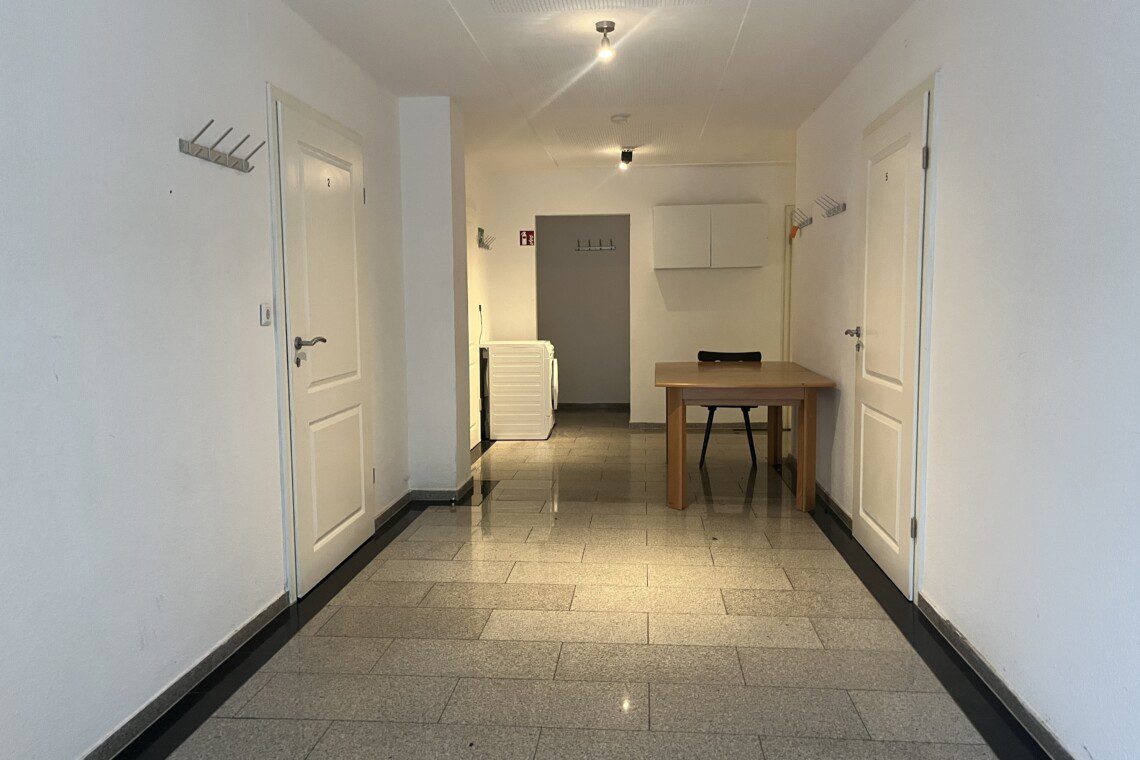 This cozy bedroom features three comfortable single beds (90m x 200m), a dining/work desk with two chairs, and 3 narrow wardrobes. In the common area, you will find 3 fully equipped fitted kitchens, 4 toilets, and 5 showers. You also have your own fully equipet kitchen in your room.