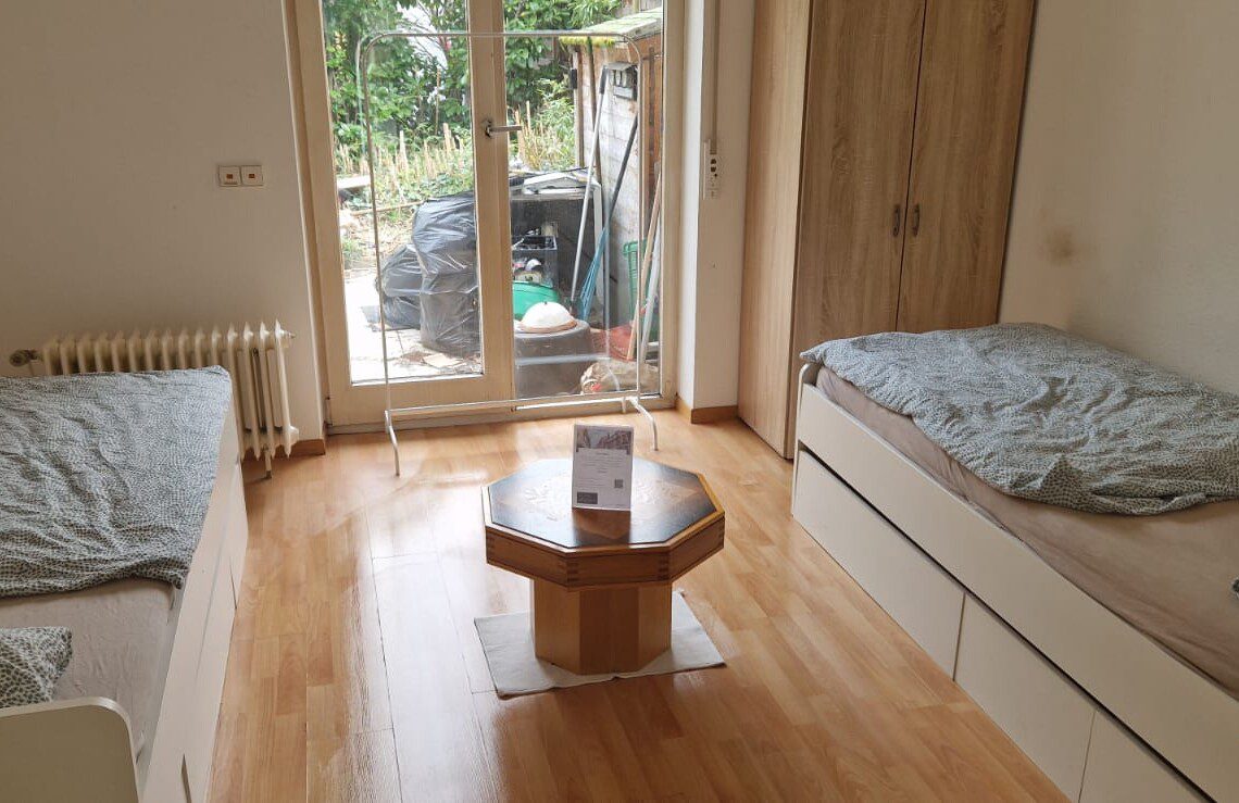Dieses gemütliche Schlafzimmer bietet zwei komfortable Einzelbetten (90m x 200m), eine Ess-/Schreibtisch mit einem Stuhl und 1- schmalen Kleiderschrank. Insgesamt findest Du im Gemeinschaftsbereich 1 voll ausgestattete Einbauküche, 1 Toiletten und 1 Dusche. Bitte beachte, dass wie beschrieben das Bad und die Küche gemeinschaftlich genutzt werden. Hinter dem Haus gibt es noch einen Garten, der von allen Bewohnern genutzt werden darf.
