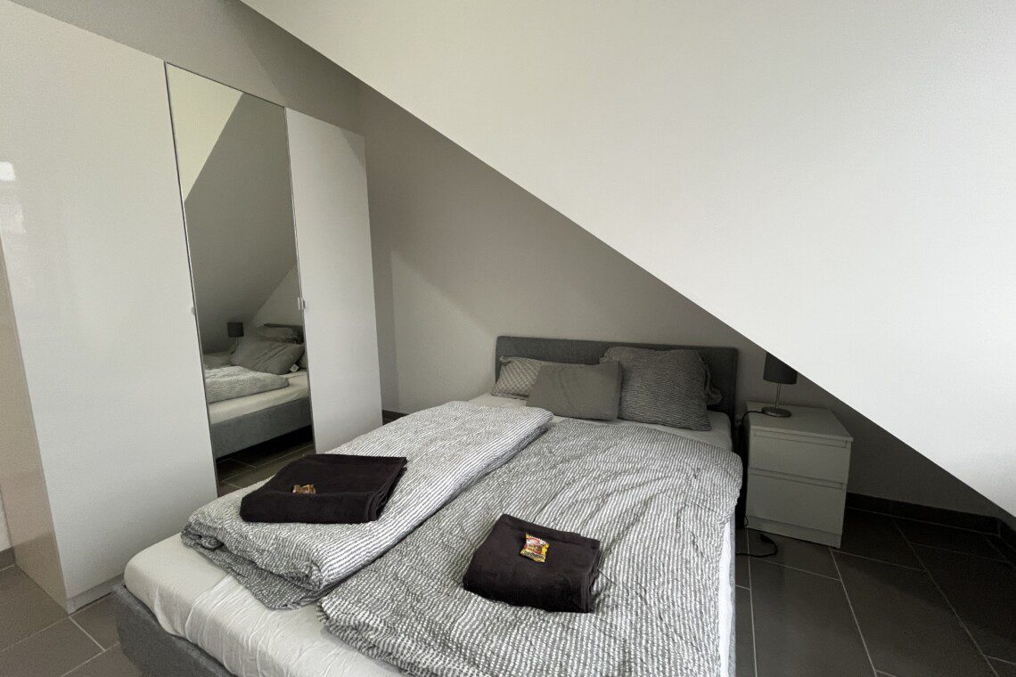 The apartment is equipped with a comfortable bed (140m x 200m), a table with two chairs, a wardrobe, a closet, and a fully equipped kitchen. If you need additional bedding, pillows, towels, or similar, we are happy to provide it to you at short notice.