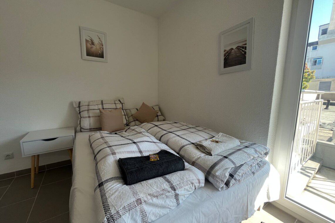 The apartment is equipped with a comfortable bed (160m x 200m), a table with two chairs, a wardrobe, a closet, and a fully equipped kitchen. If you need additional bedding, pillows, towels, or similar, we are happy to provide it to you at short notice.